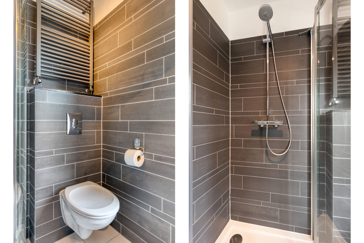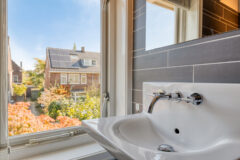 Op de eerste verdieping zijn drie slaapkamers aanwezig, ideaal voor kinderen, logees of een thuiswerkplek. De moderne badkamer is praktisch en sfeervol, voorzien van een inloopdouche, wastafelmeubel en toilet.