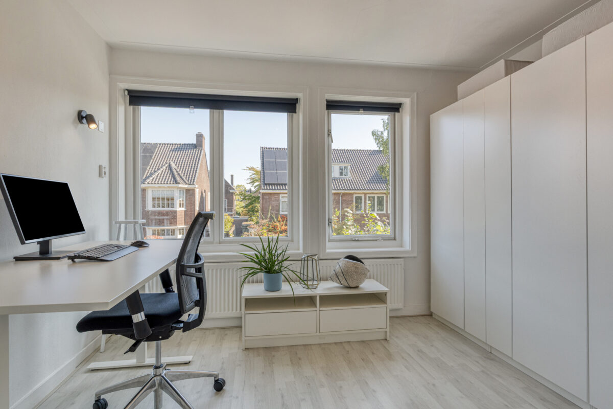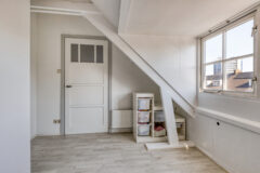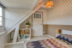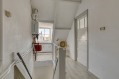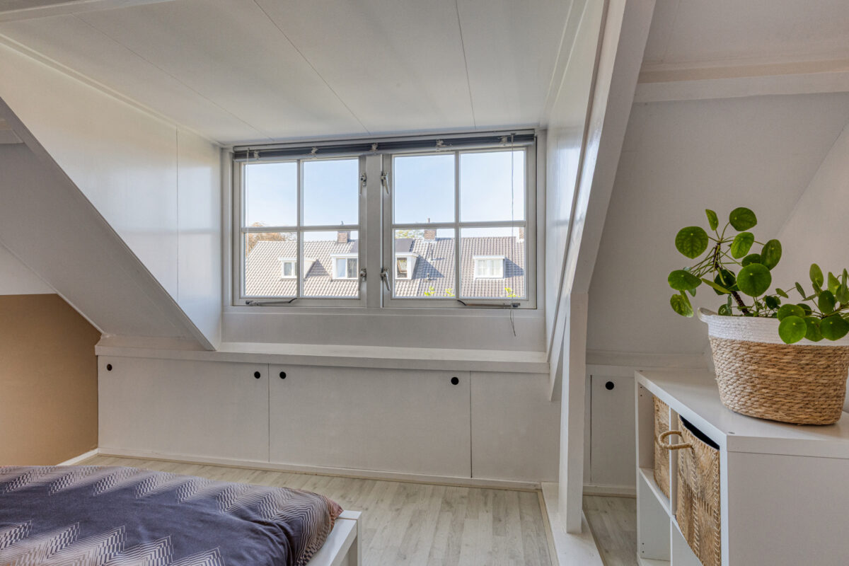 Via de vaste trap bereik je de tweede verdieping. Dankzij de dakkapellen is ook hier volop licht en ruimte. Twee extra slaapkamers bieden veel mogelijkheden: een ouderslaapkamer, werkkamer of speelruimte. Op de voorzolder vind je de aansluitingen voor de wasmachine en droger en is de CV-installatie geplaatst (2023). Over de gehele verdieping aan de voor- en achterzijde bieden de knieschotten extra opslagruimte.