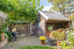 De achtertuin is een echte plus. Dankzij de gunstige ligging op het zuiden geniet je hier de hele dag van de zon. De tuin is verzorgd aangelegd met een combinatie van groen, terras en zitplekken, waardoor er altijd een fijne plek is om te ontspannen of samen te eten. De voortuin geeft de woning daarnaast extra uitstraling en privacy vanaf de straat. In de voortuin is de elektriciteit aanwezig wat uitgebreid kan worden tot een laadpaal.
