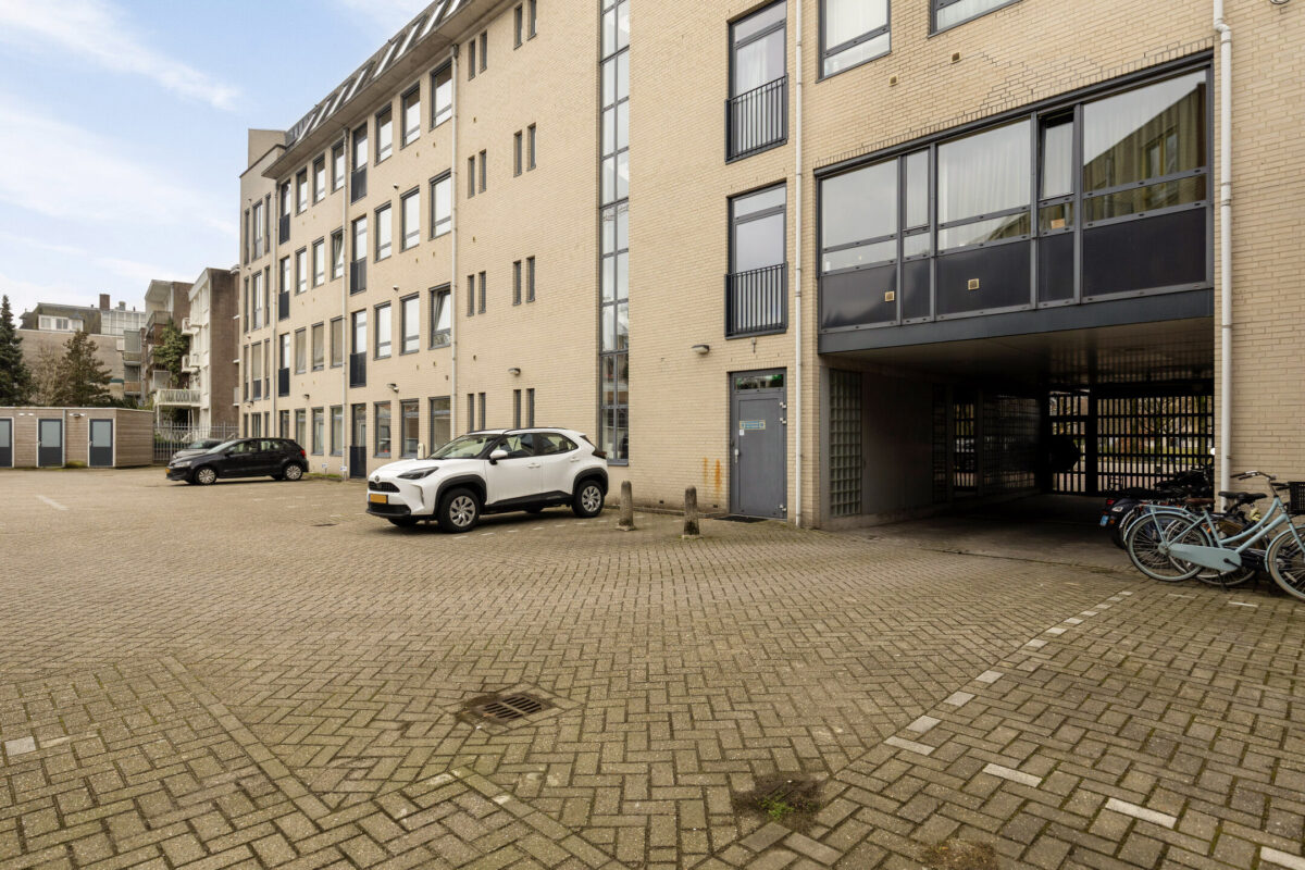 Achter het complex wordt een beveiligde parkeerplaats aangeboden. Deze wordt separaat verkocht voor € 25.000,-, een groot pluspunt op deze centrale locatie.
