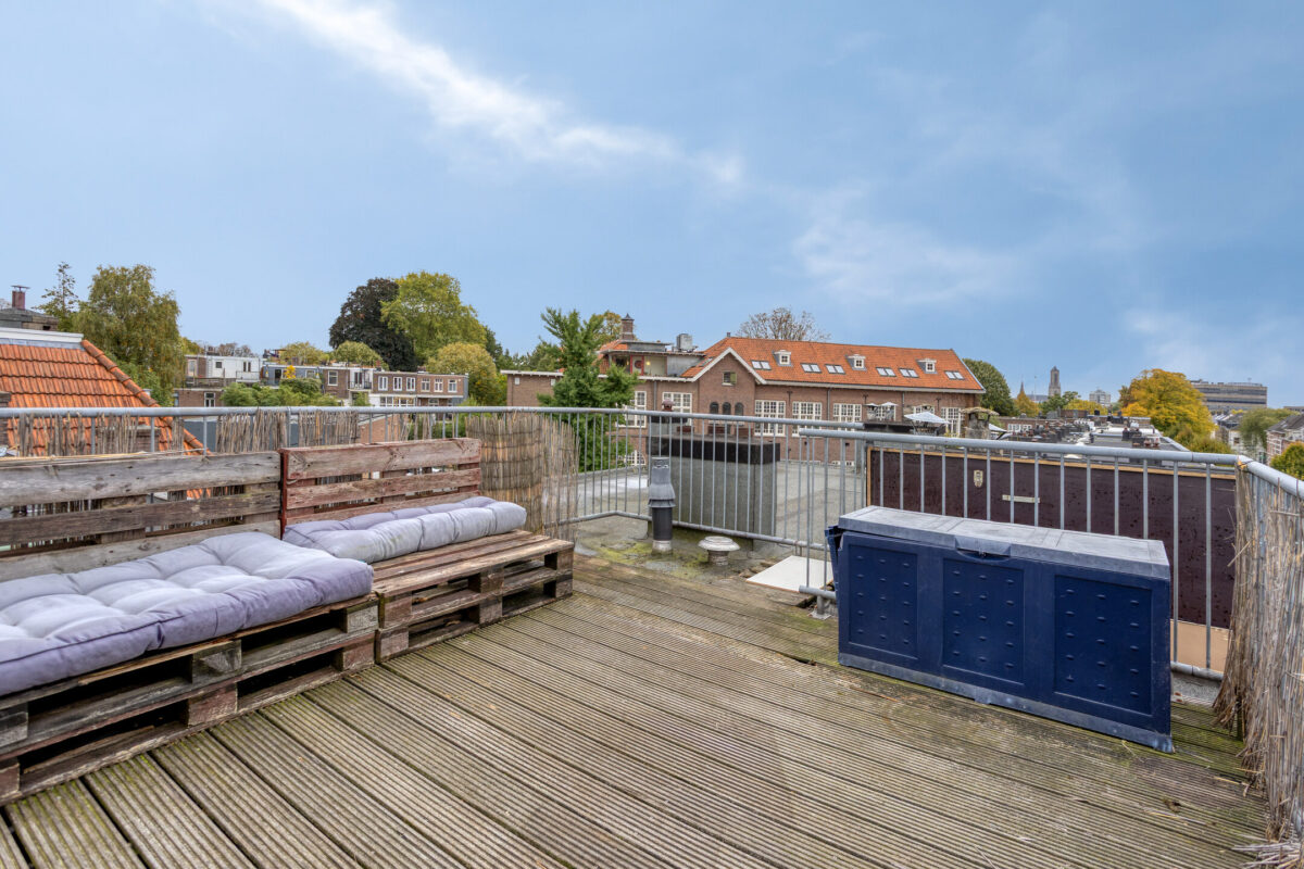 Via een vaste trap bereik je het dakterras: een heerlijke buitenruimte waar je kunt ontspannen en genieten van het uitzicht over Arnhem. Of je nu in de zon wilt ontbijten of ’s avonds met vrienden iets wilt drinken, dit terras is echt een pluspunt van deze woning.