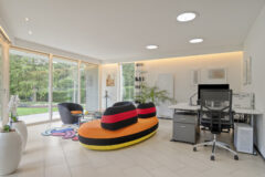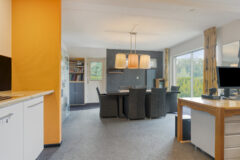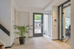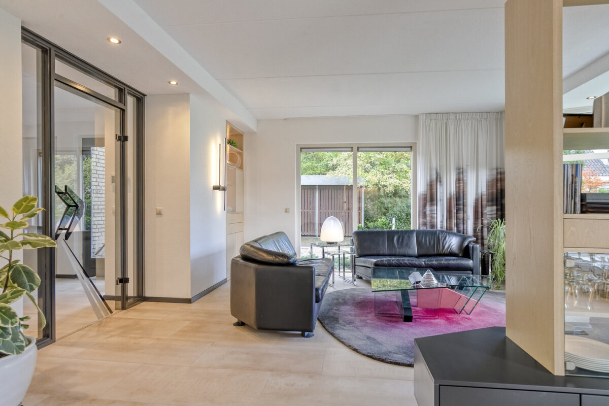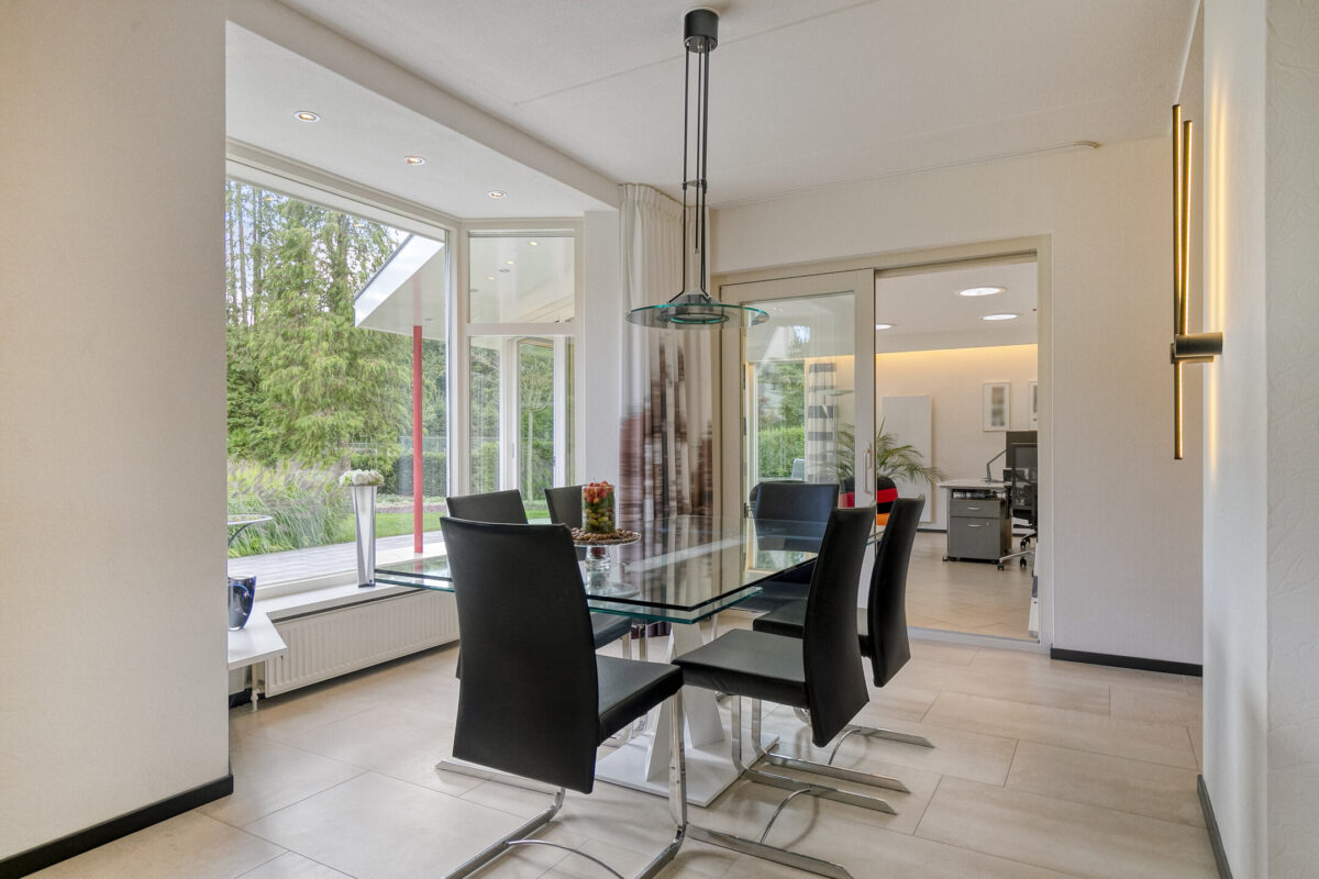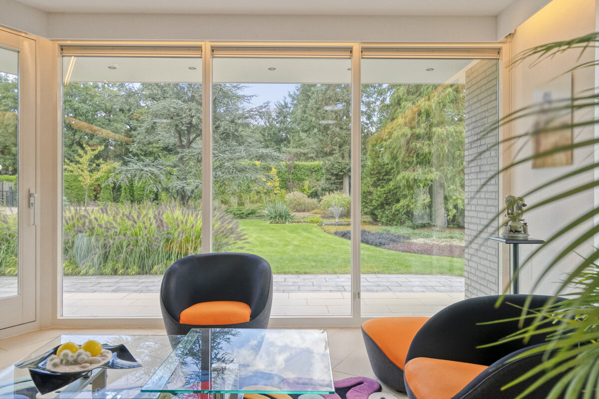 Een bijzonder element van de woning is de lichte tuinkamer. Door de grote ramen rondom en de directe verbinding met het terras en de tuin is dit een unieke plek waar binnen en buiten naadloos samenkomen. Hier geniet u in elk seizoen van het groen en de rust rondom de woning.