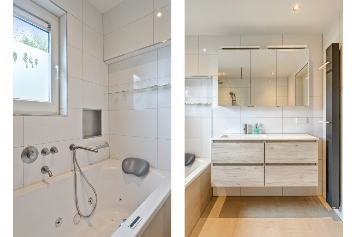 Op de eerste verdieping bevindt zich een ruime master bedroom met toegang tot een eigen balkon. Daarnaast is er één goed bemeten slaapkamer die uitstekend geschikt is als logeer- of hobbyruimte. De badkamer is modern uitgevoerd en beschikt over een jacuzzi ligbad, ruime inloopdouche, wastafel en een toilet.