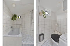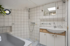 De badkamer is functioneel en compleet, met douche, wastafel en ligbad.