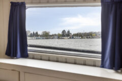 Hier merk je direct het verschil. Geen straat, geen verkeer, maar ruimte en rust. Via de loopbrug stap je aan boord en laat je het land achter je.