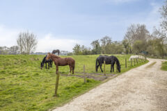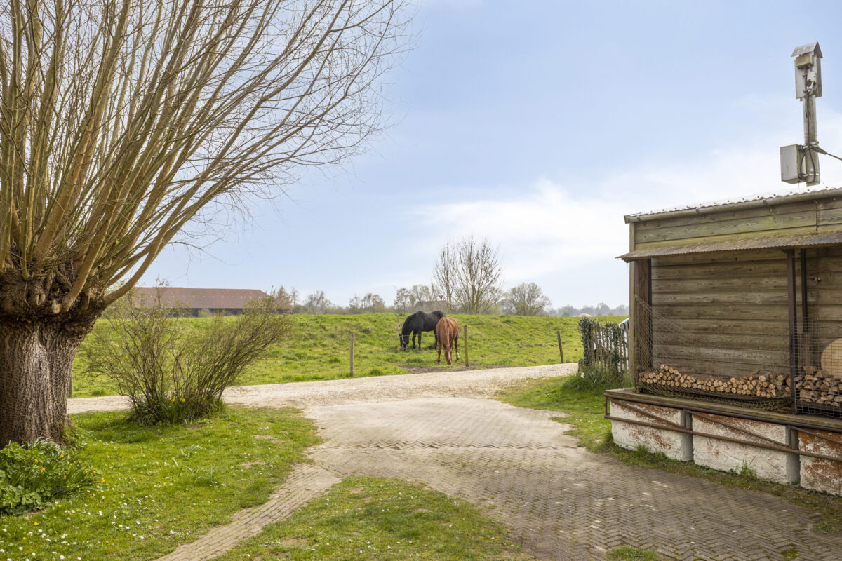 Rondom ervaar je vrijheid. Aan de achterzijde kijk je uit over weilanden waar paarden lopen.