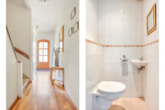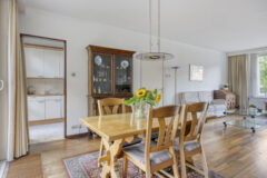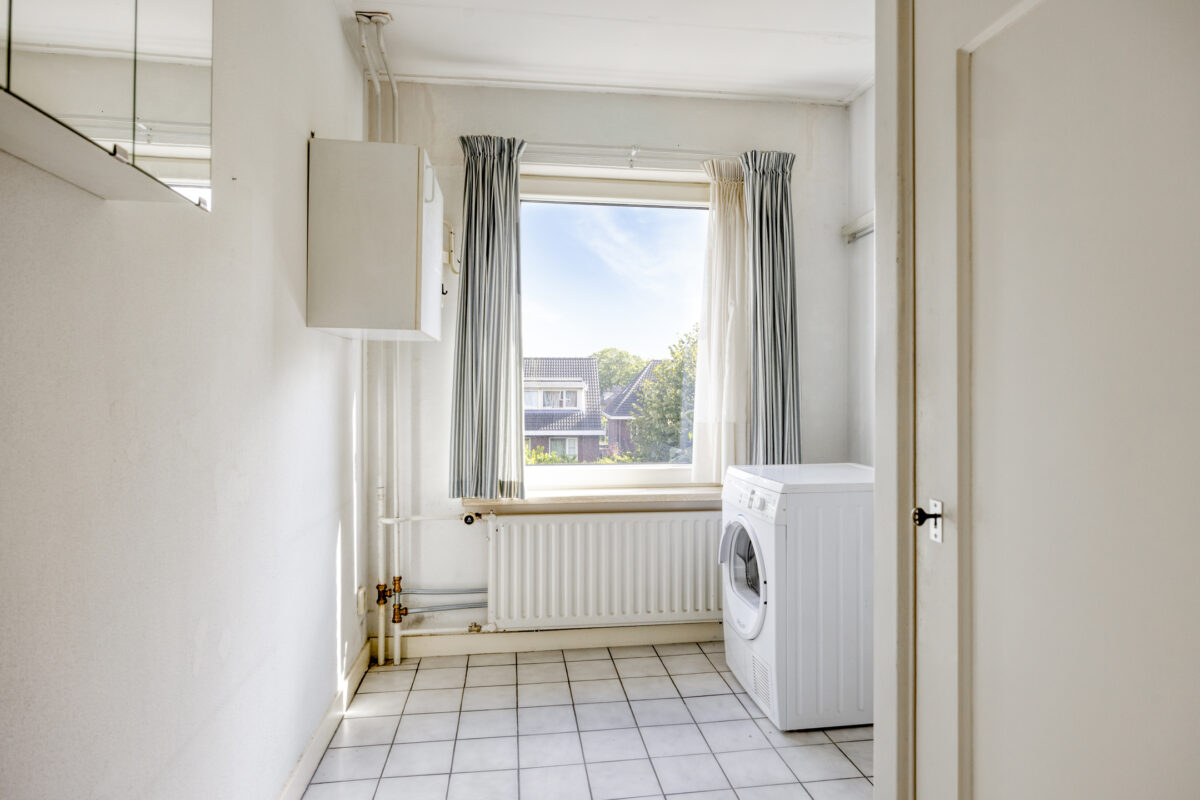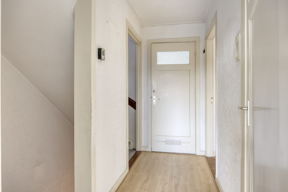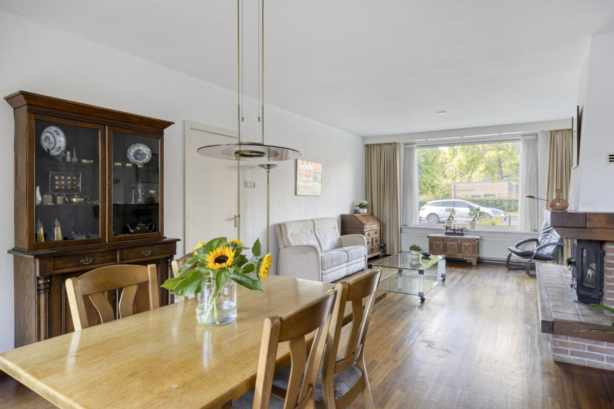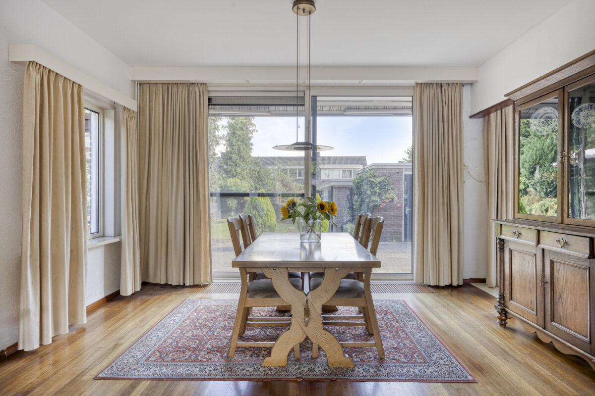 Bij binnenkomst betreedt u de lichte hal met trapopgang, toilet en toegang tot de kelder. De woonkamer is royaal en strekt zich uit over de gehele diepte van de woning, met een zitgedeelte aan de voorzijde en een eetgedeelte aan de achterzijde. Grote raampartijen zorgen voor veel lichtinval en een aangename sfeer. Aansluitend bevindt zich de keuken, die functioneel is ingericht en voorzien van kastruimte en diverse apparatuur.