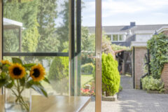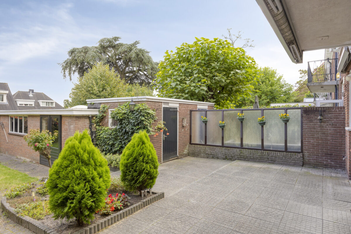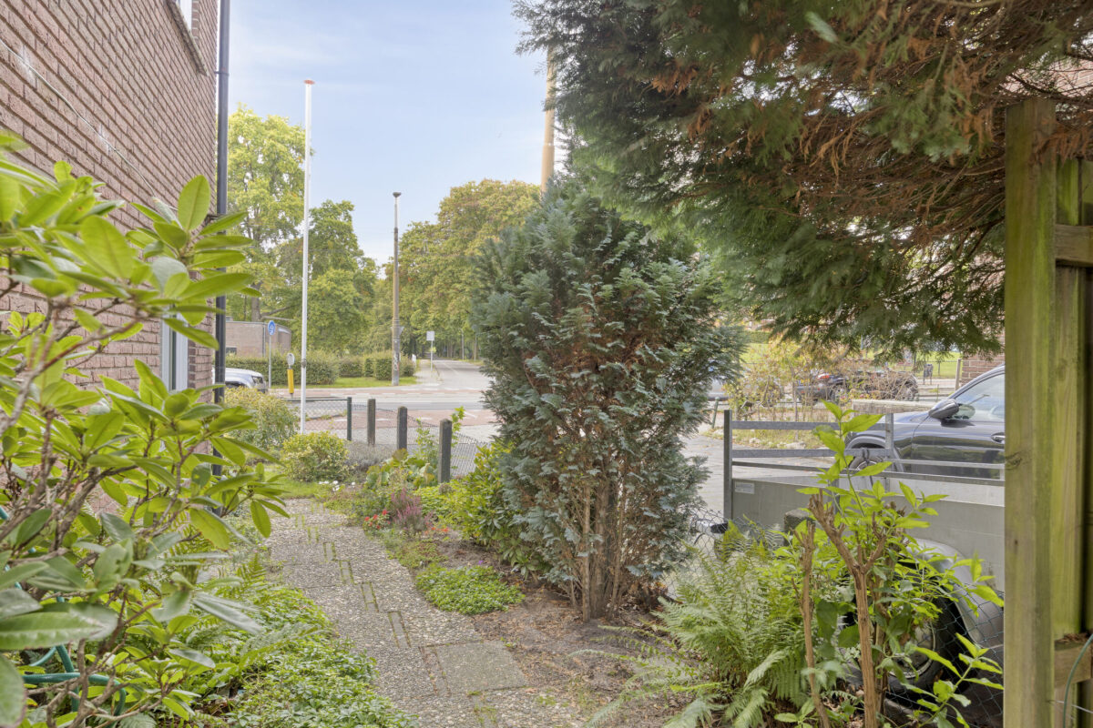 De voortuin is eveneens verzorgd aangelegd en geeft de woning een representatieve uitstraling vanaf de straatzijde.
