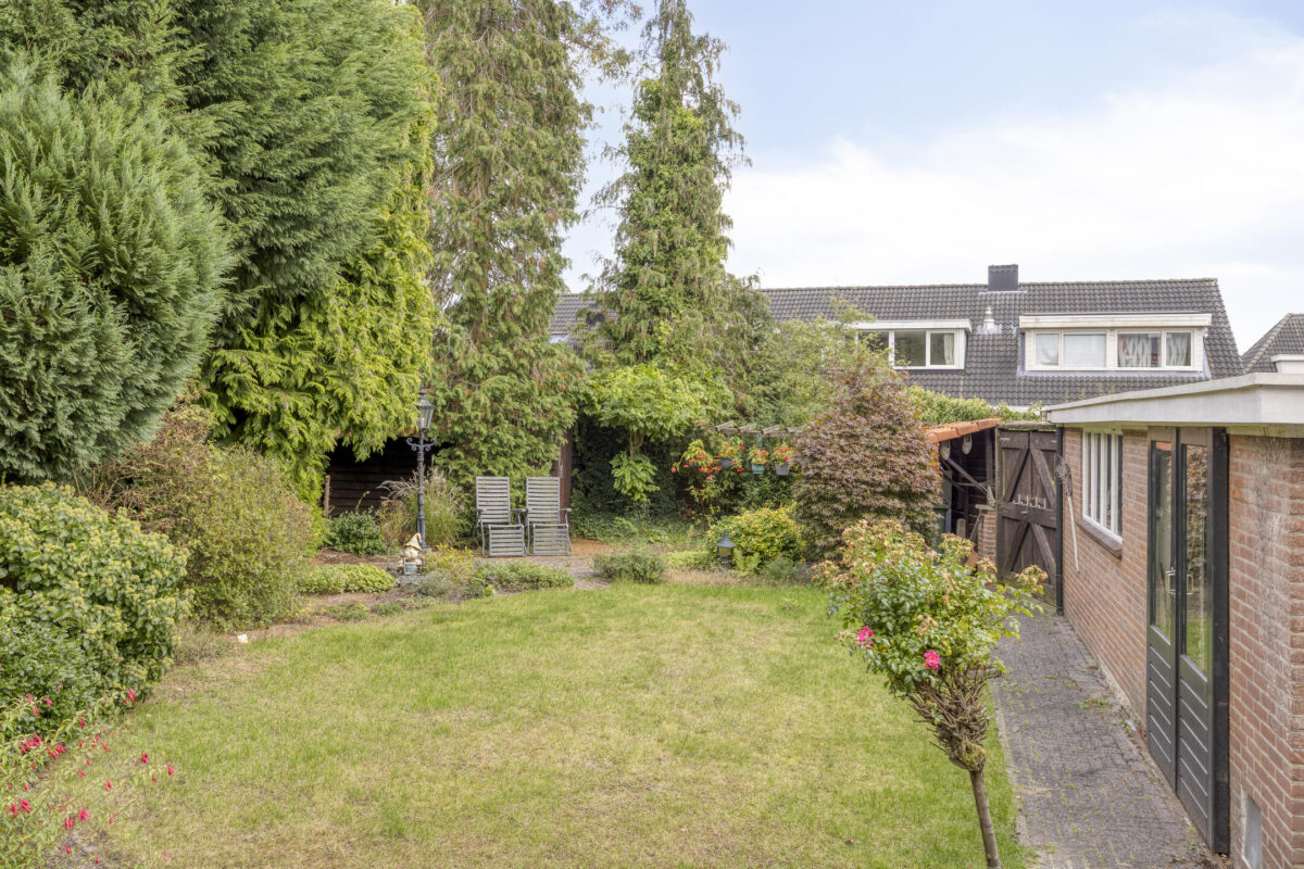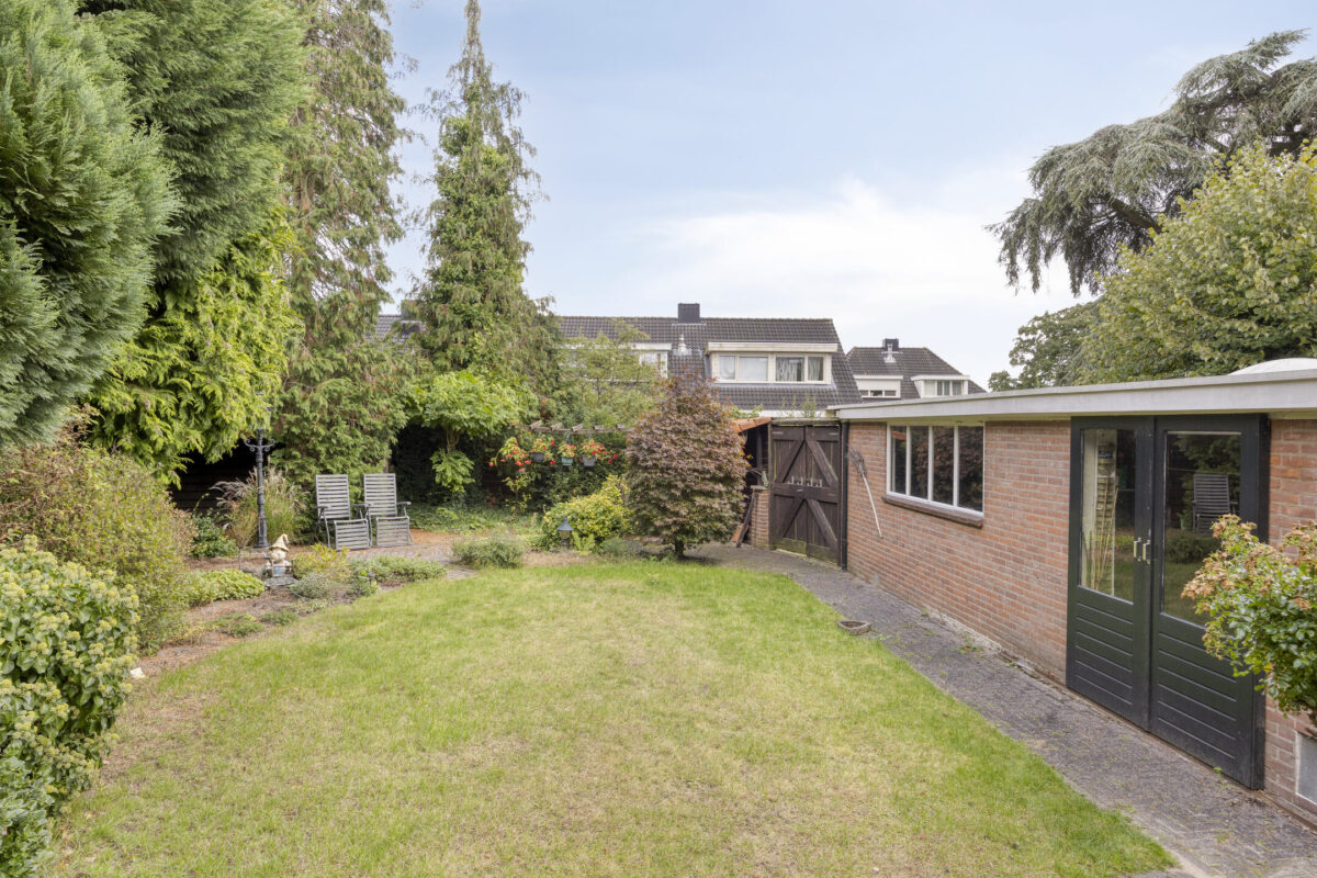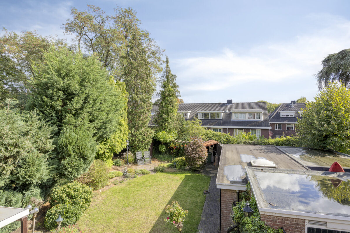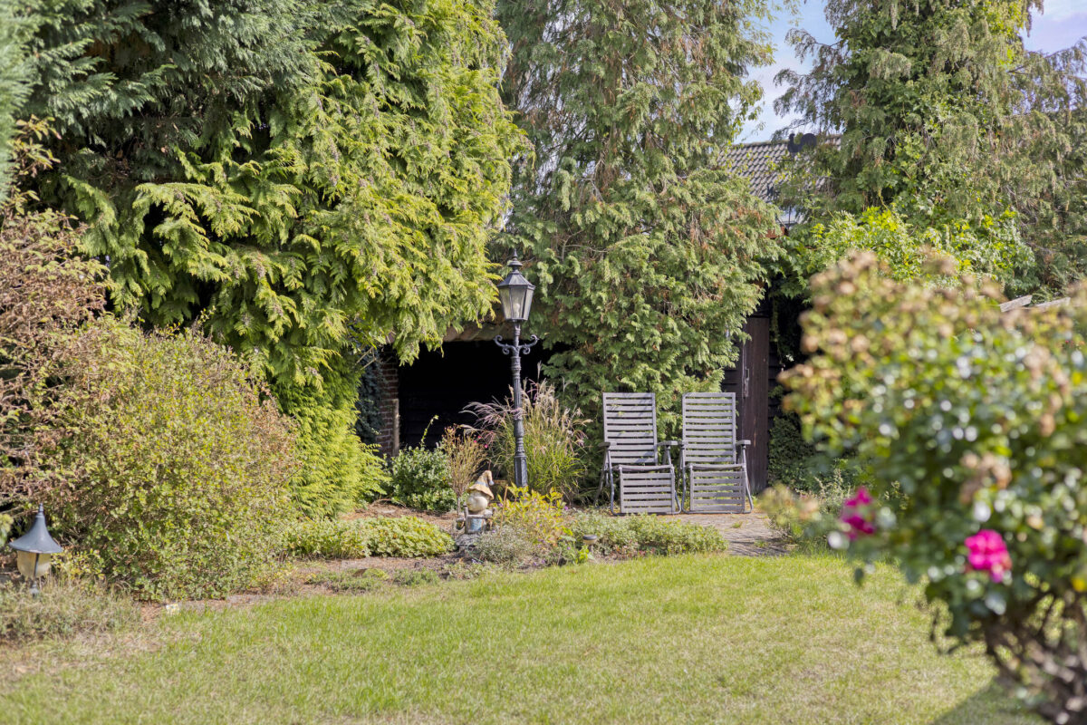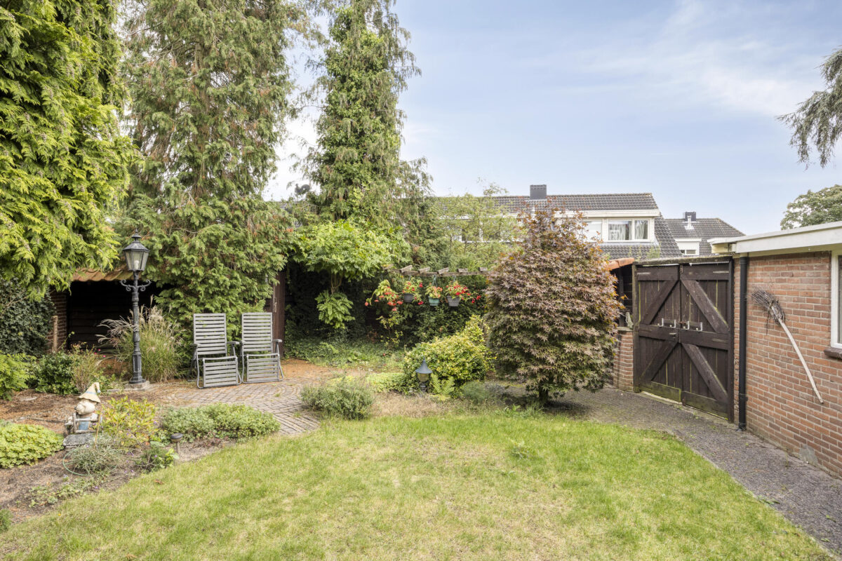 De achtertuin is een absolute blikvanger: diep, breed en groen aangelegd. Er zijn meerdere terrassen en volwassen beplanting, waardoor u altijd een fijne plek vindt om van de zon of schaduw te genieten. Aan de woning bevindt zich een praktische overkapping waar u beschut buiten kunt zitten. Via de woning loop je zo naar de stenen berging met aanrechtblok en achterin de tuin staat de royale stenen garage. De garage is bereikbaar via de Laan van Klarenbeek, waardoor u altijd verzekerd bent van een parkeerplek.