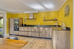 Ook buiten is aan alles gedacht: de keukenluiken zijn op maat gemaakt, het huis is grotendeels voorzien van draadloze rolluiken op zonne-energie en voor extra veiligheid is er een alarmsysteem van Verisure aanwezig.