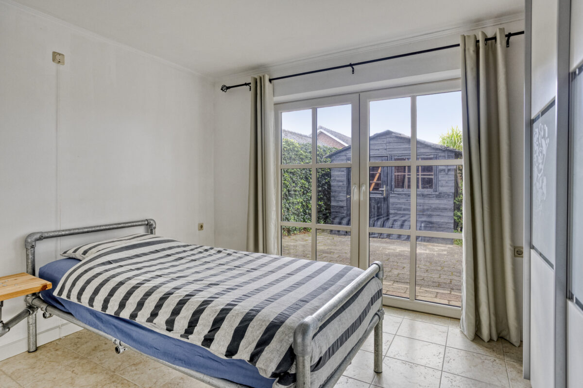 Het vrijstaande bijgebouw biedt verrassend veel ruimte en is volledig zelfstandig te gebruiken. Indeling: hal/entree, badkamer met inloopdouche, wastafel en toilet, was-/stookruimte, slaapkamer met openslaande deuren naar het terras en een lichte woonkamer met open keuken voorzien van inbouwapparatuur. Via een vlizotrap is de zolder bereikbaar. De begane grond is voorzien van vloerverwarming en de cv-ketel is in 2022 vernieuwd.