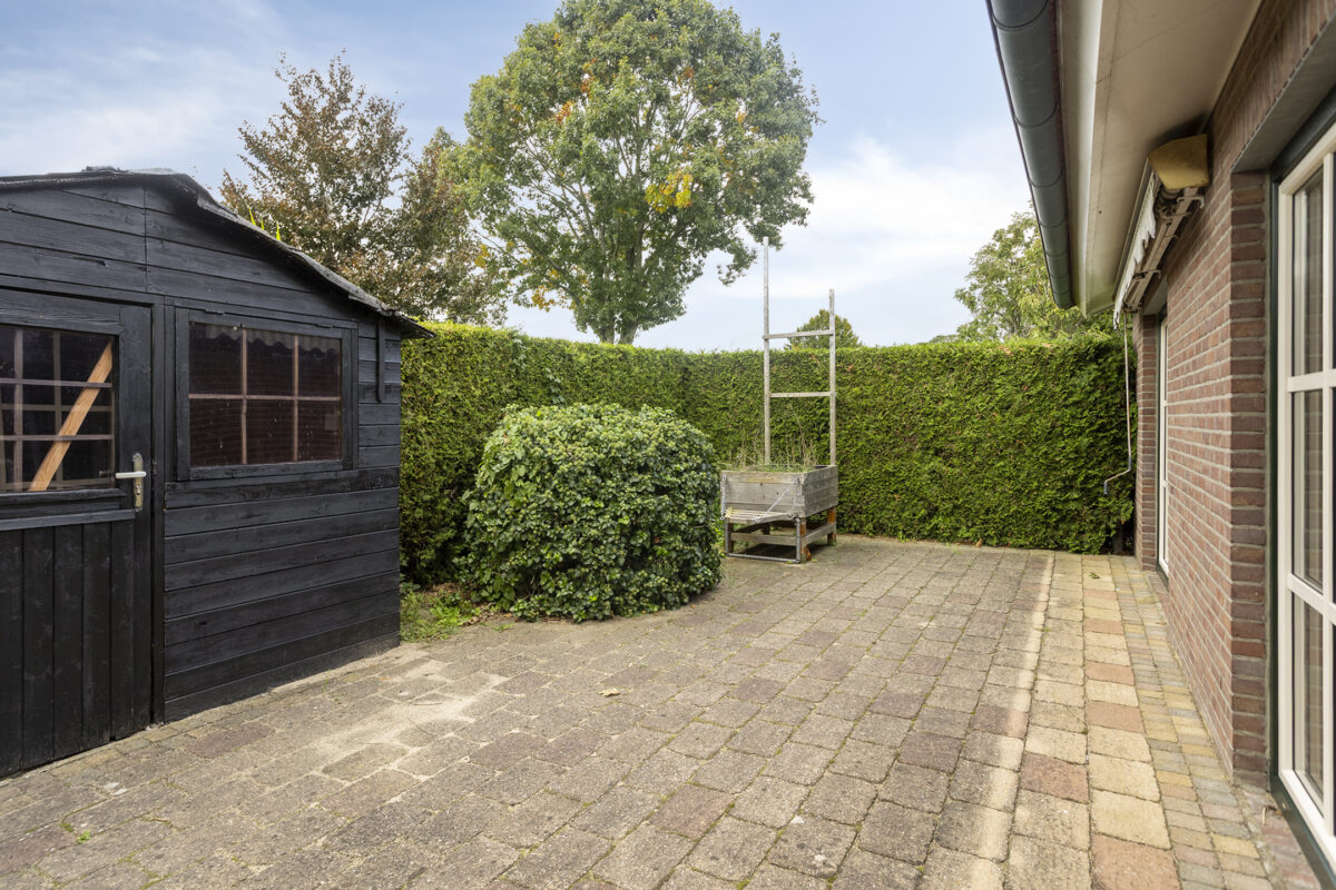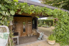 Er is een prieel en een grote houten schuur/berging aanwezig, ideaal te gebruiken voor kluswerkzaamheden en als opslag voor bijvoorbeeld fietsen of als thuisgym. Naast de schuur/berging bevindt zich de sauna (2019) met overkapping perfect voor ontspanning in eigen tuin.