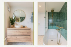 De keuken heeft een moderne en stoere uitstraling met zwarte fronten, een houten werkblad en stijlvolle details. De badkamer is recent vernieuwd en uitgevoerd in een luxe wellness-stijl met groene tegels, messing kranen, een vrijstaand ligbad met regendouche en een natuurlijke vloerafwerking. Daarnaast beschikt de woning over drie ruime slaapkamers, grotendeels kunststof kozijnen met dubbel glas, een praktische bergruimte met aansluiting voor wasmachine en droger en een verrassend ruime kelder. Door de hoekligging is er extra privacy en meer lichtinval dan in veel andere bovenwoningen.