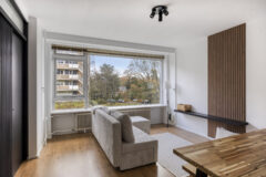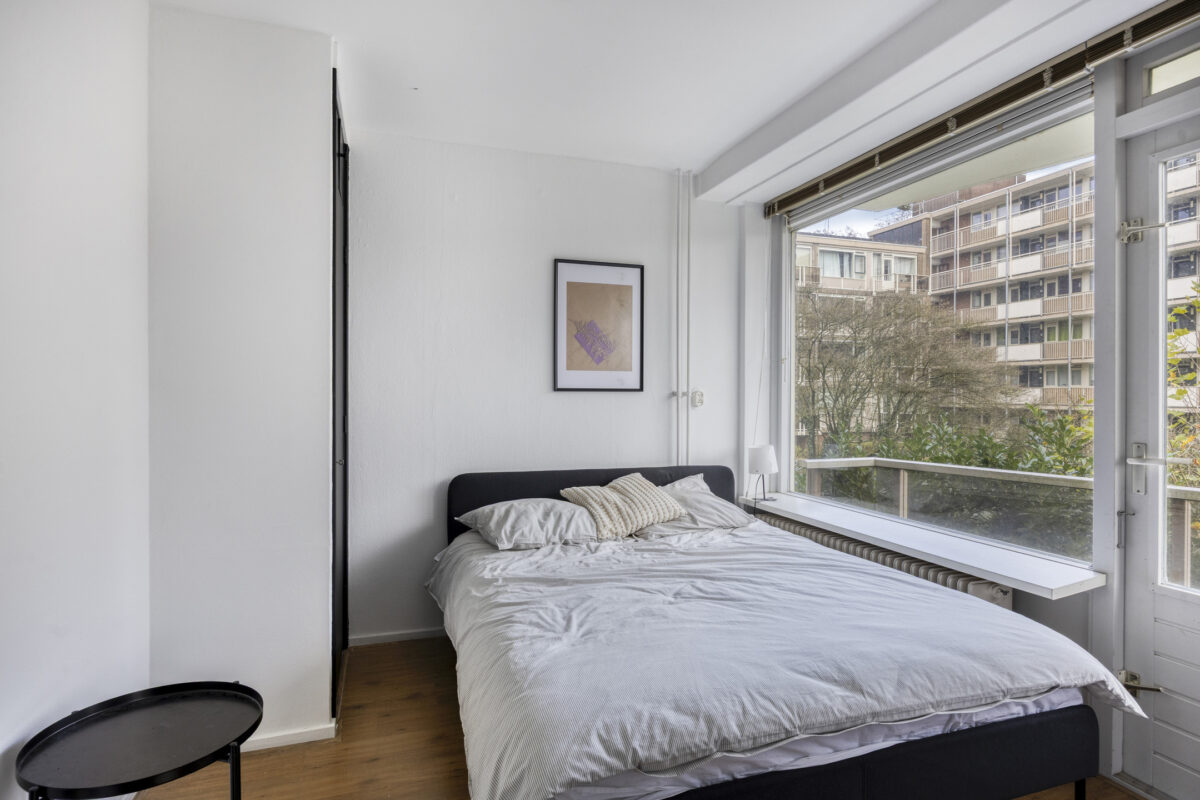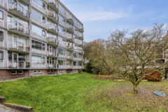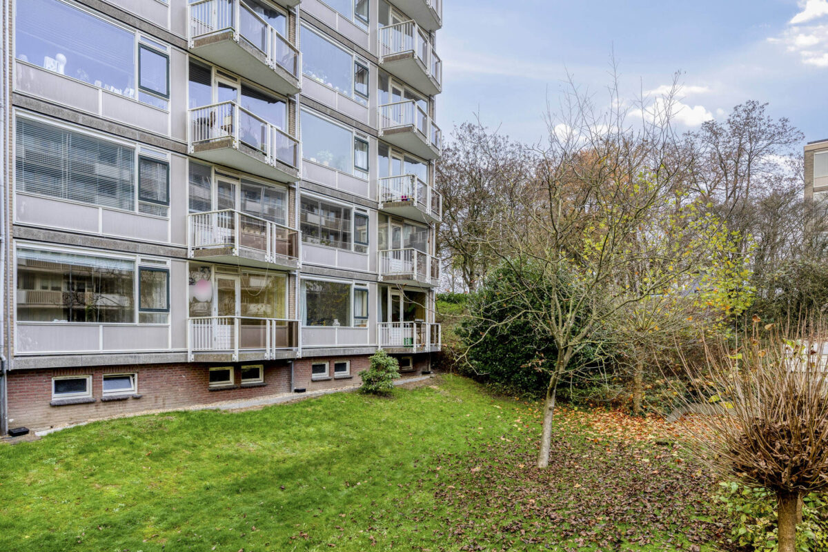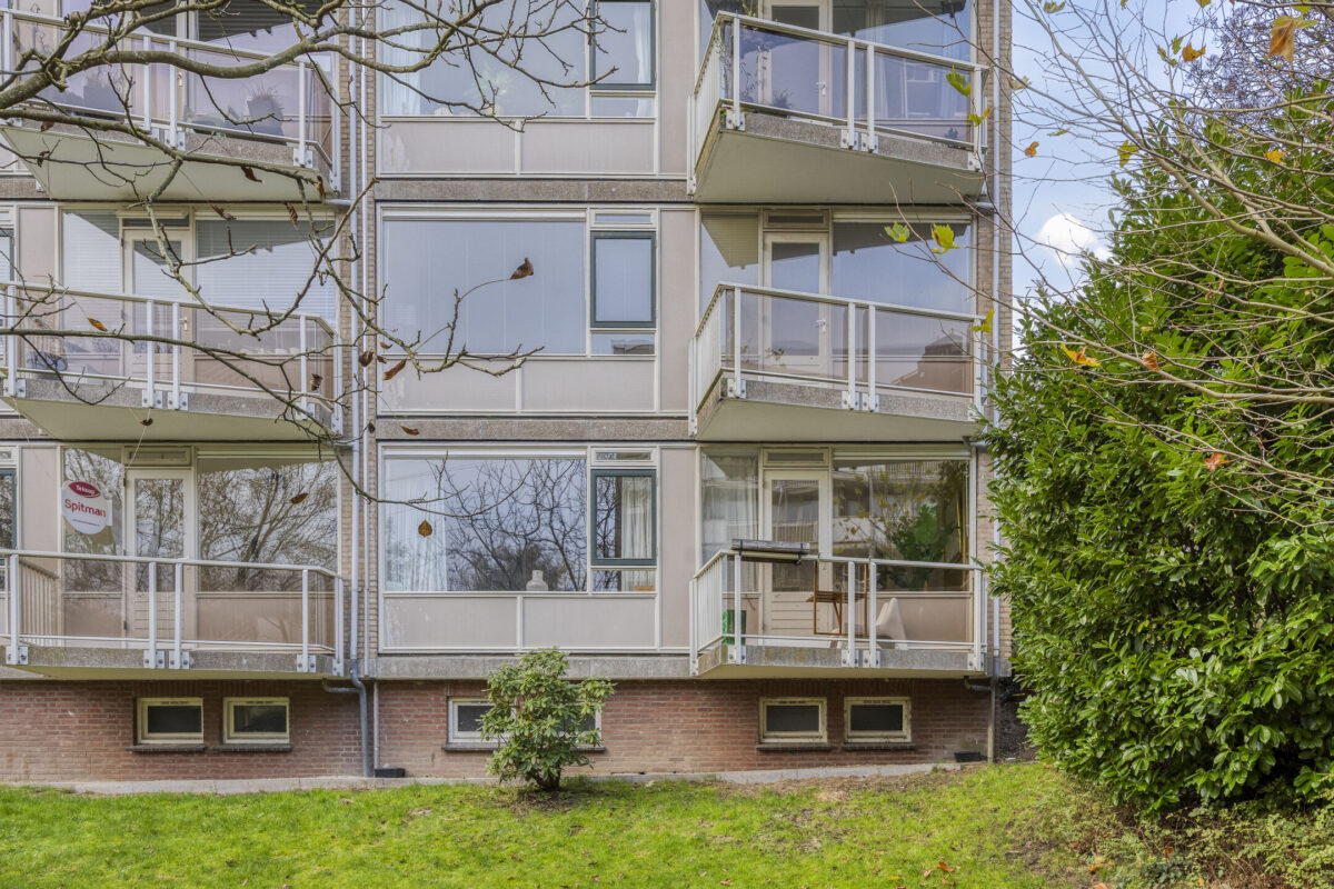 Entree, hal met meterkast, separaat toilet met fontein, heerlijk lichte woonkamer met een fraai uitzicht over de groene omgeving, schuifdeur naar eerste slaapkamer met toegang tot het zonnige balkon, recent gemoderniseerde gesloten keuken welke is voorzien van de benodigde inbouwapparatuur, een vaste kast en een elektrische boiler voor het warme water, recent gemoderniseerde badkamer met inloopdouche en wastafel, tweede goed bemeten slaapkamer.