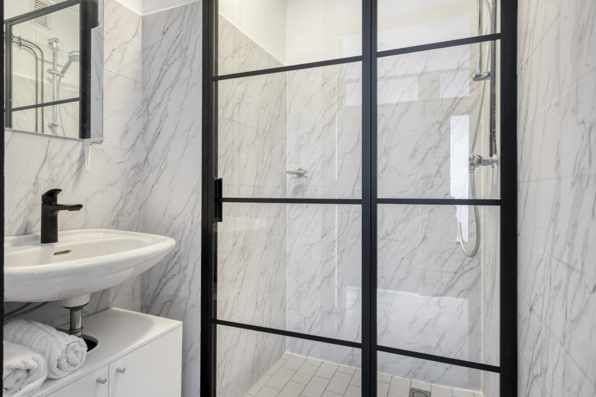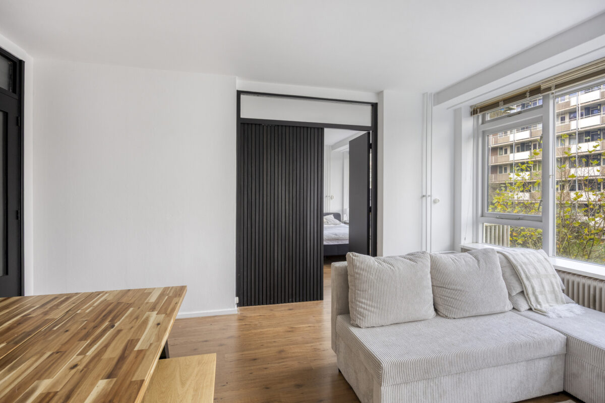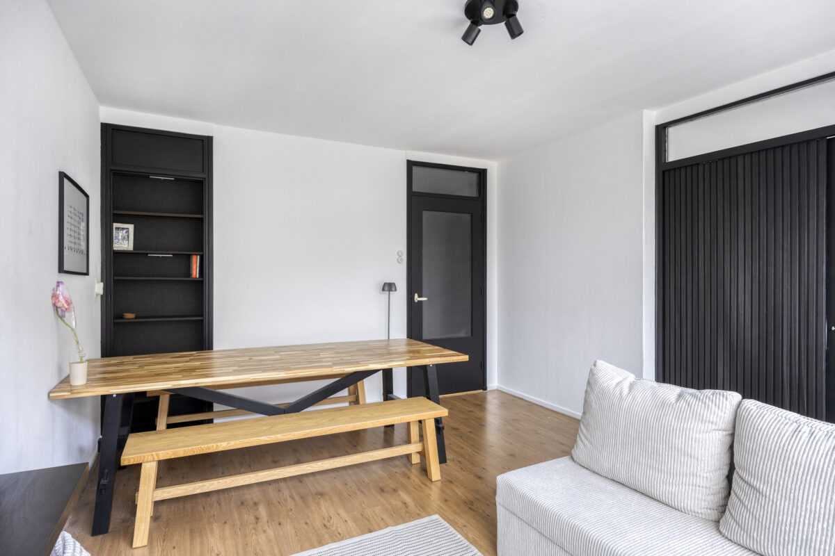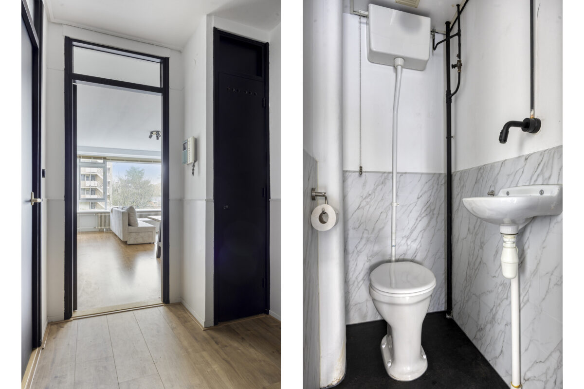Entree, hal met meterkast, separaat toilet met fontein, heerlijk lichte woonkamer met een fraai uitzicht over de groene omgeving, schuifdeur naar eerste slaapkamer met toegang tot het zonnige balkon, recent gemoderniseerde gesloten keuken welke is voorzien van de benodigde inbouwapparatuur, een vaste kast en een elektrische boiler voor het warme water, recent gemoderniseerde badkamer met inloopdouche en wastafel, tweede goed bemeten slaapkamer.