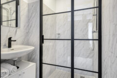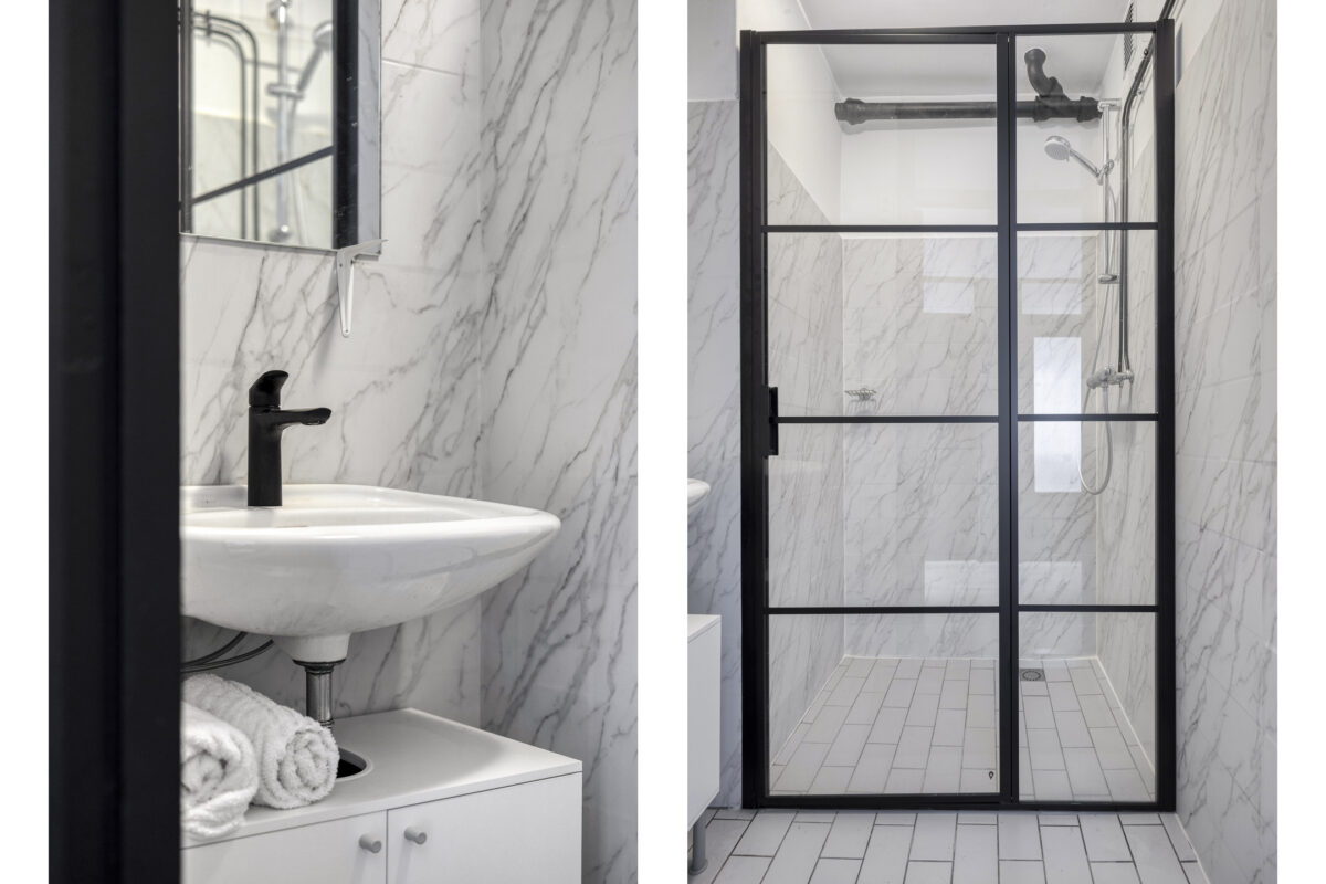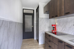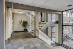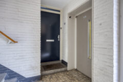 Bellentableau, intercominstallatie en brievenbussen. Via de centrale hal zijn de bergingen in de onderbouw te bereiken en de lift. Zowel via de lift als via het trappenhuis toegang tot het appartement op de 1e verdieping.
